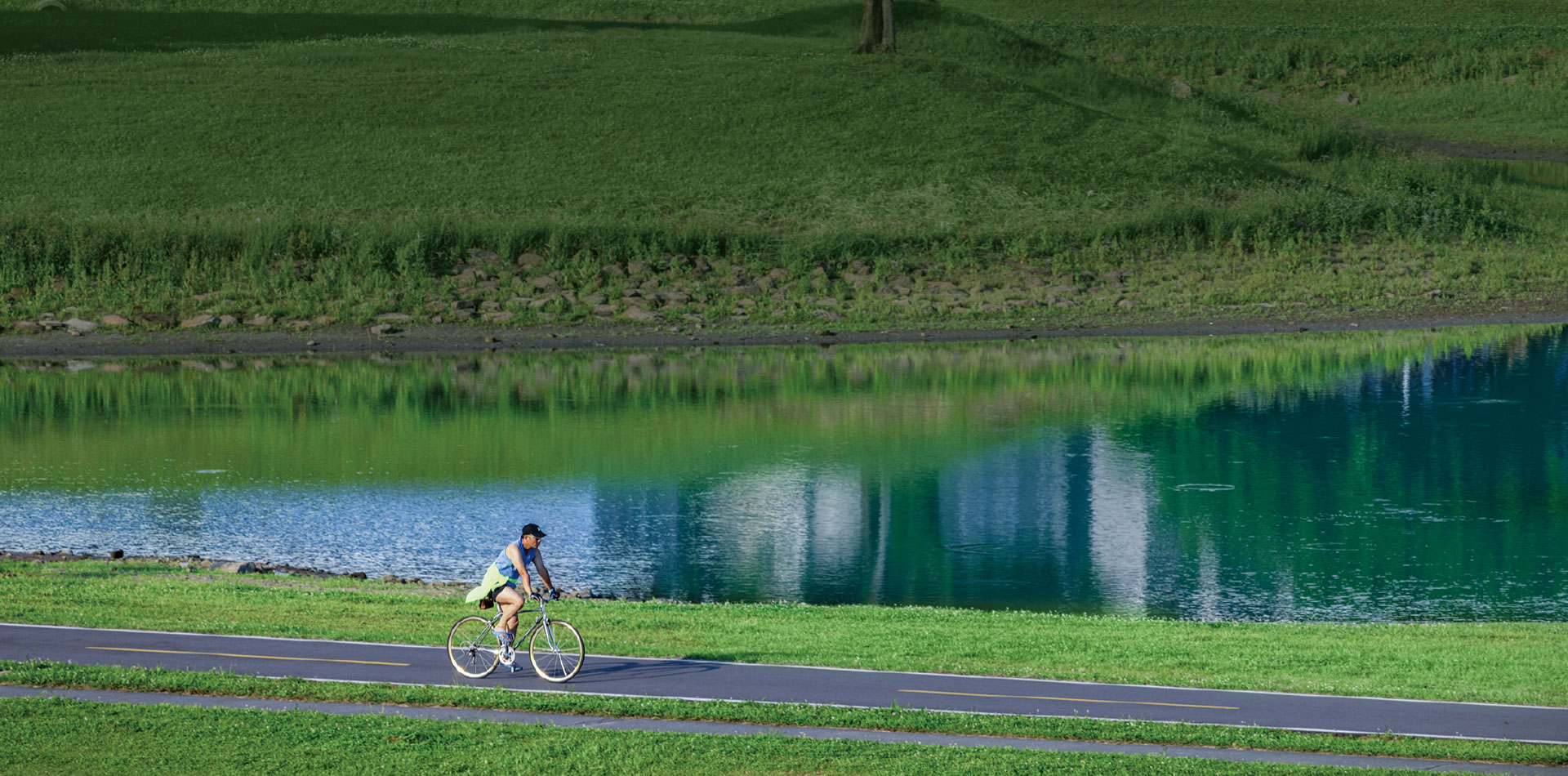 湖泊環繞、大樹成蔭,生態教室、運動場域、親子廣場一應俱全。